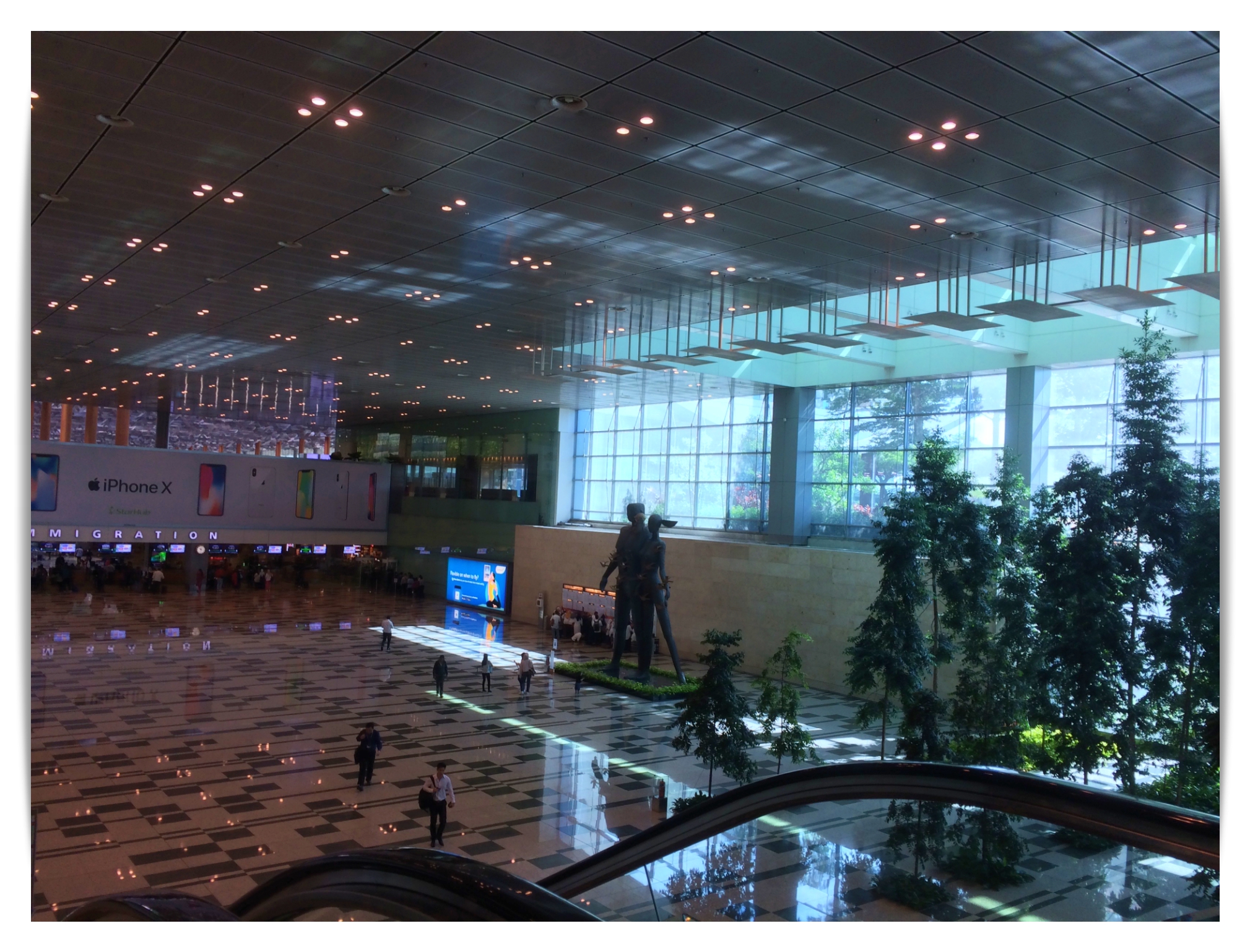 The Wi-Fi functioned flawlessly, but the connection was only active for three hours. A few steps forward from the help desk, I found myself standing at the top of the escalator, seeing Changi unfurl before my eyes. I spotted a big human sculpture, and a grand Christmas Tree, on my right, as we descended. The airport was brimming with revelry, and the joyous atmosphere had begun to pervade. The immigration booth was just near to the activities. I proceeded through a single person unlatch security system after completing the procedures, and there I was: IN SINGAPORE!